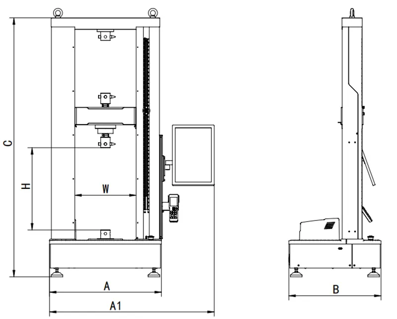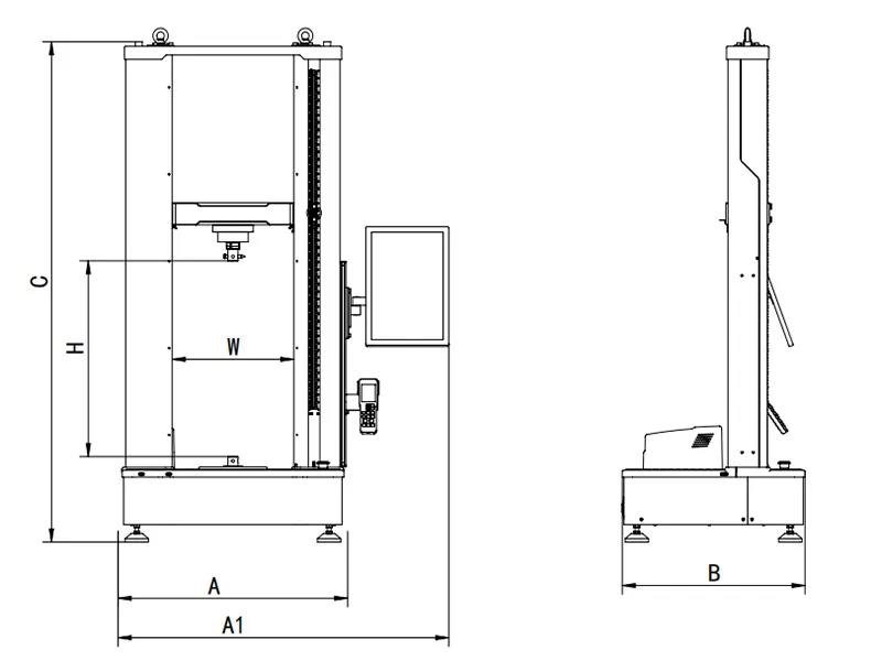 | Model | Overall dimension | Crosshead travel | Test width | Main unit dimensions |
