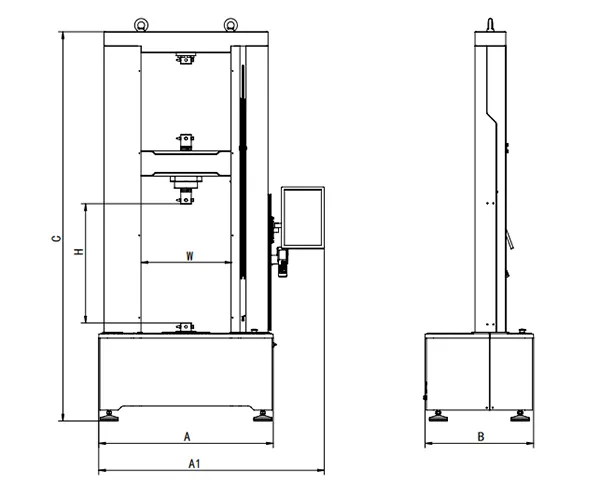 | Model | Dimension, mm | Grip distance, mm | Crosshead travel, mm | Test width, mm | Touch screen width, mm |